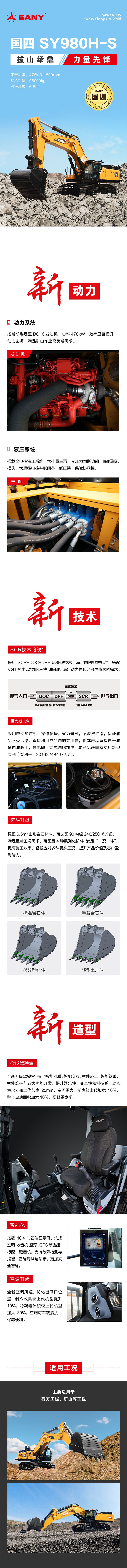 | 性能 | 行走速度:4.3/3.0km/h 爬坡能力:35° 回轉(zhuǎn)速度:7rpm 接地比壓:132kPa 鏟斗挖掘力:495kN 斗桿挖掘力:405kN |